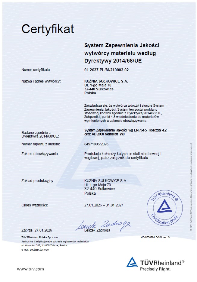 Nowoczesny park maszynowy, doświadczenie pracowników oraz bardzo dobra organizacja i kontrola produkcji gwarantują doskonałą jakość odkuwek. Nasza firma poddawana jest także regularnemu nadzorowi zewnętrznemu – posiadamy certyfikaty ISO 9001:2015, ISO 14001:2015, ISO 50001:2018, ISO 45001:2018, IATF 16949:2016, koncesję na wytwarzanie i obrót rodzajami broni, amunicji oraz wytwarzanie i obrót wyrobów o przeznaczeniu wojskowym lub policyjnym
